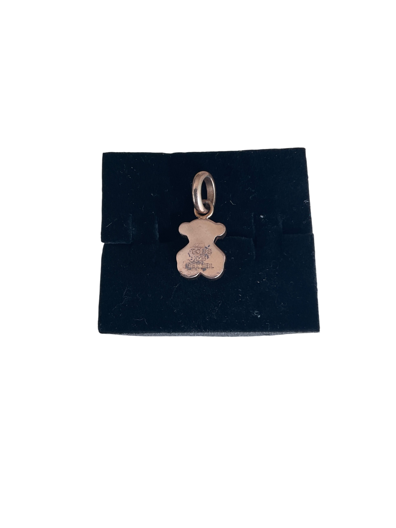 Dije pequeño en forma de osito, ícono de la marca, elaborado en orode 24 K. Diseño minimalista, elegante y versátil.