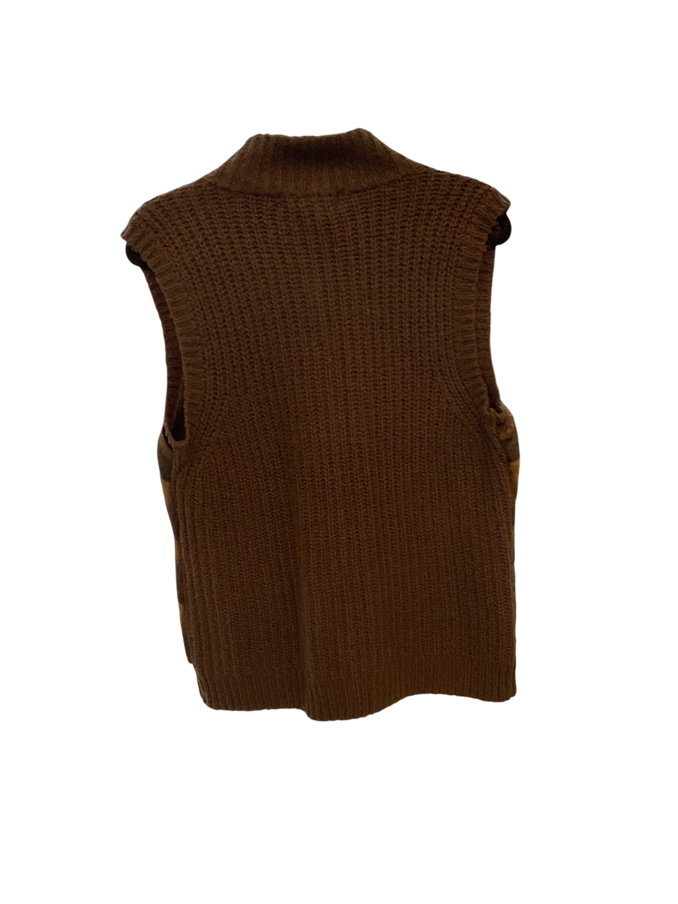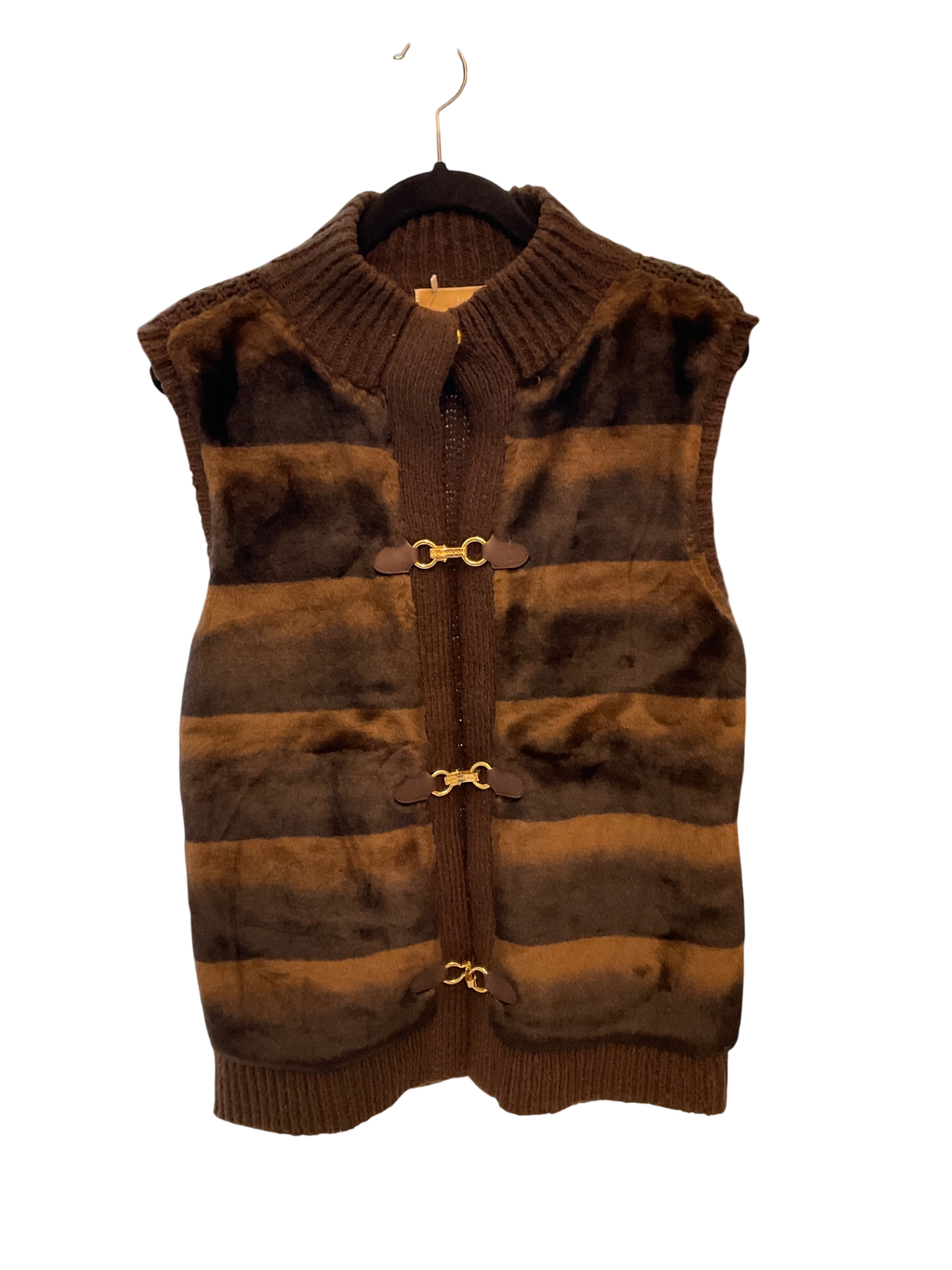 Chaleco MICHAEL KORS, Café, Talla L, Algodón, cuello redondo, con broches metálicos dorados en forma de herraje sujetos con tiras de piel.