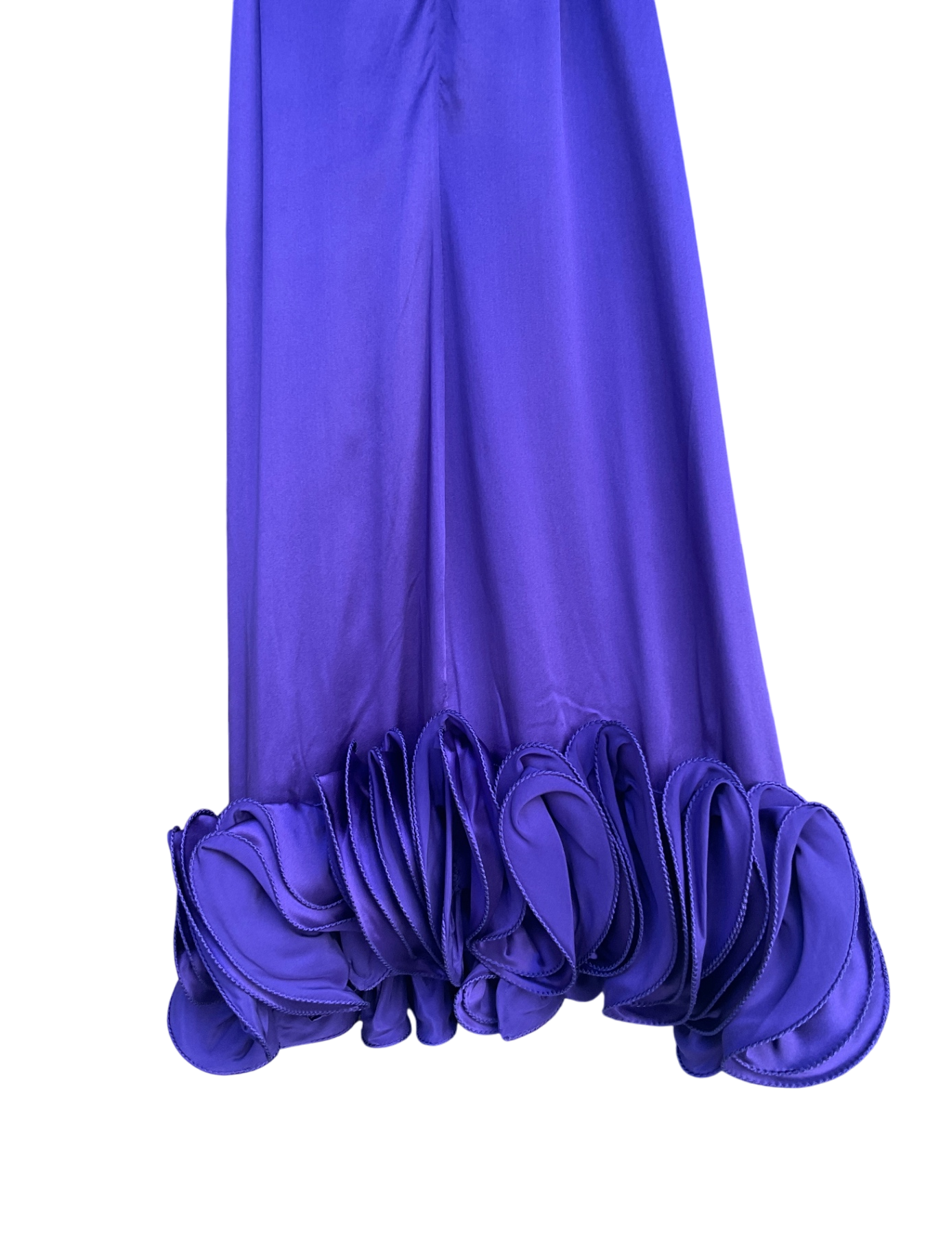 Vestido corto con diseño fluido y elegante. Escote redondo con detalle de ajuste en la parte trasera con lazo, dobladillo decorado con aplicaciones tridimensionales en forma de pétalos, tela satinada con caída ligera.