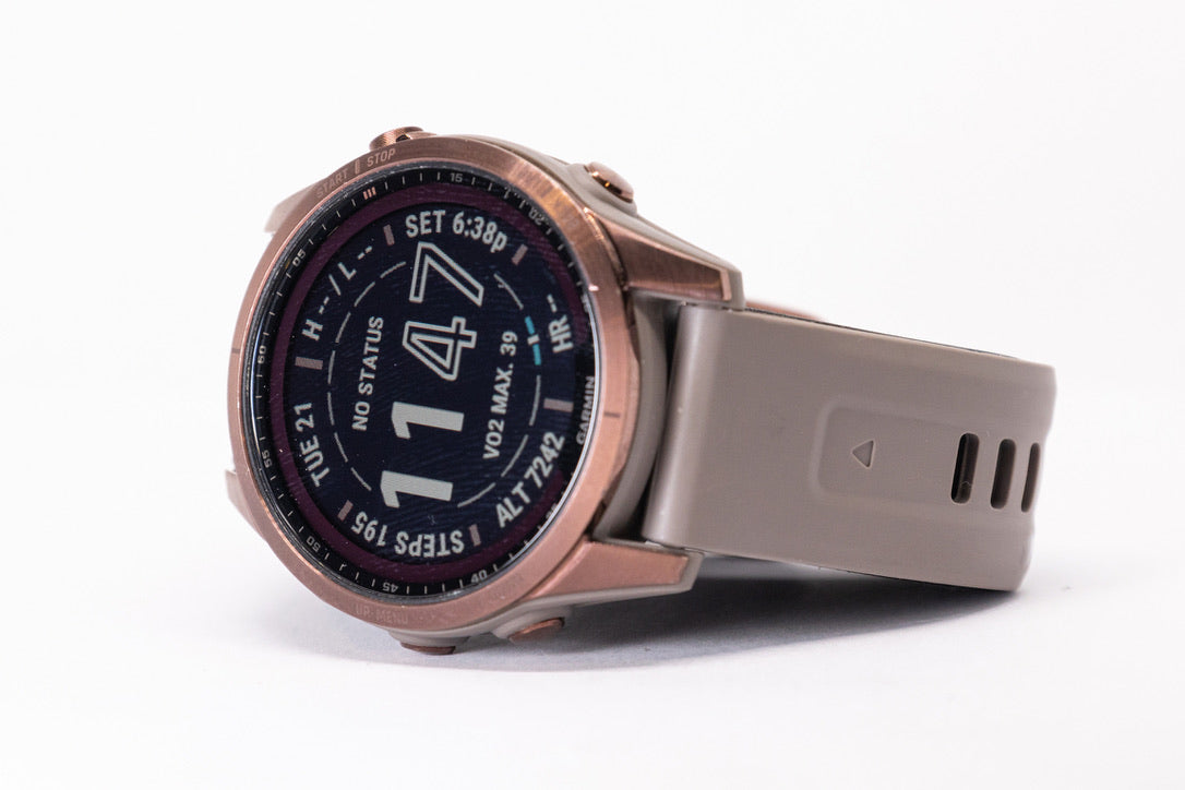 Reloj deportivo premium Garmin,Fēnix 7S con cristal de zafiro y carga solar. Multideporte con GPS, ideal para aventuras al aire libre. Correa de bronce duradera y elegante. Perfecto para el atleta moderno que busca precisión y estilo